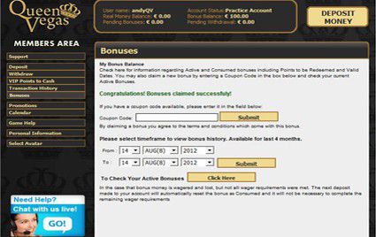 - Bitte klicken Sie auf Boni links im Menü* und die Bonus-Seite öffnet sich.